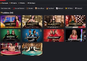 προσφέρει πολλές παραλλαγές για όλα τα γούστα. Υπάρχει ποικιλία σε live τραπέζια για ρουλέτα και live blackjack. Οι παραλλαγές είναι πολλές και ελκυστικές, μία επίσκεψη θα σας πείσει.