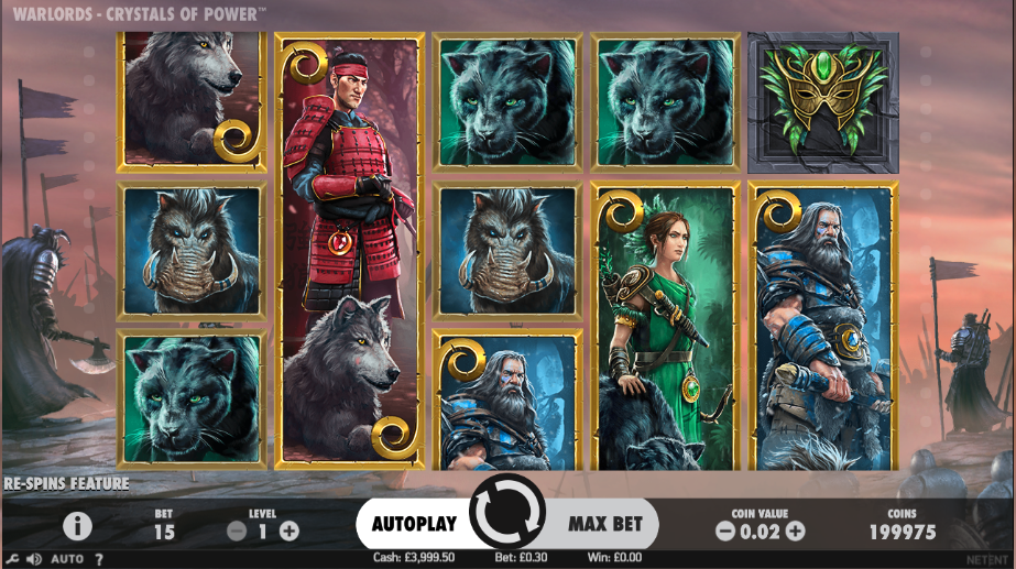 Το «Warlords: Crystals of Power» είναι ένα πεντάστηλο live παιχνίδι με 30 πιθανούς συνδυασμούς, προϊόν της Net Ent. Είναι εμπνευσμένο από τους πολεμιστές του μεσαίωνα και τις μάχες τους. Οι φιγούρες που διαθέτει είναι ένας Σαμουράι, ένας Ιερέας και ένας Βάρβαρος.