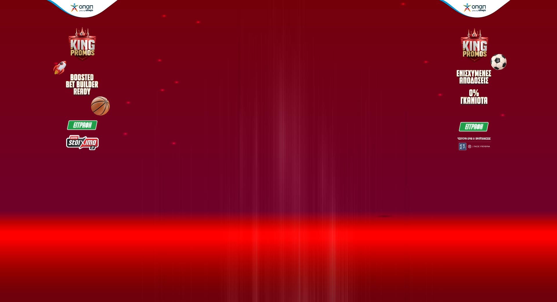 Στο Pamestoixima.gr ζεις όλες τις μεγάλες διοργανώσεις σαν να είσαι… Βασιλιάς! Σούπερ ενισχυμένες αποδόσεις*, μοναδικές προσφορές*, ενισχυμένα Bet Builder Ready*, ειδικά παικτών, 0% γκανιότα** και πολλές ακόμα στοιχηματικές επιλογές σε περιμένουν σε όλα τα παιχνίδια.
